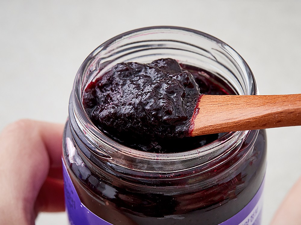 촉촉한 질감의 블루베리 듬뿍 생생과일잼이에요. 블루베리 본연의 진하고 향긋한 단맛을 즐기기 좋지요. 원물감을 간직해 평범한 베이커리에 포인트를 더한답니다. 담백한 모닝빵이나 과일 샌드위치에 발라 근사한 간식을 만들어보세요.