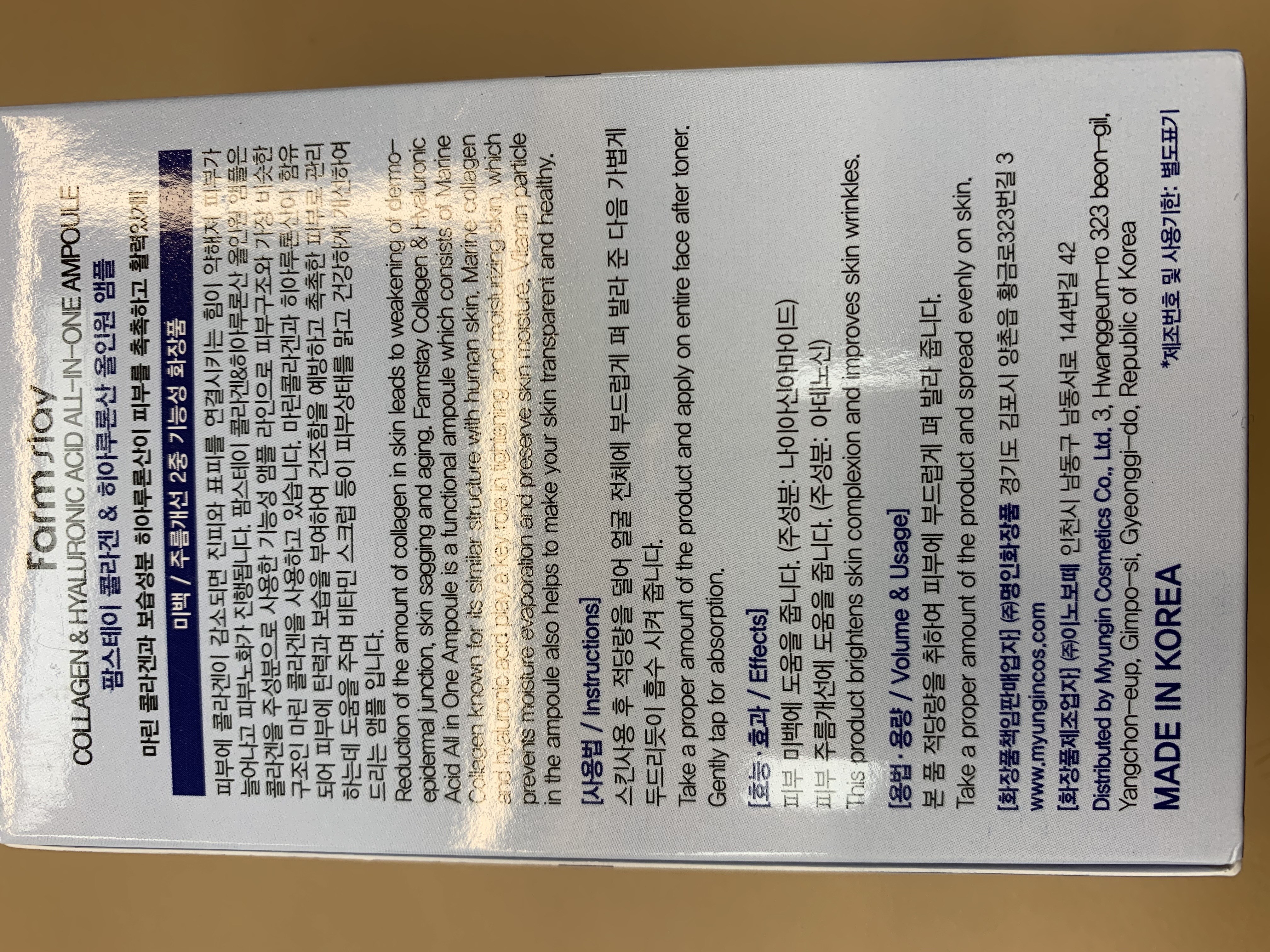 | 화장품제조업자, 화장품책임판매업자 및 맞춤형화장품판매업자 | (주)이노보떼 / (주)명인화장품 | 제조국 | 대한민국 |