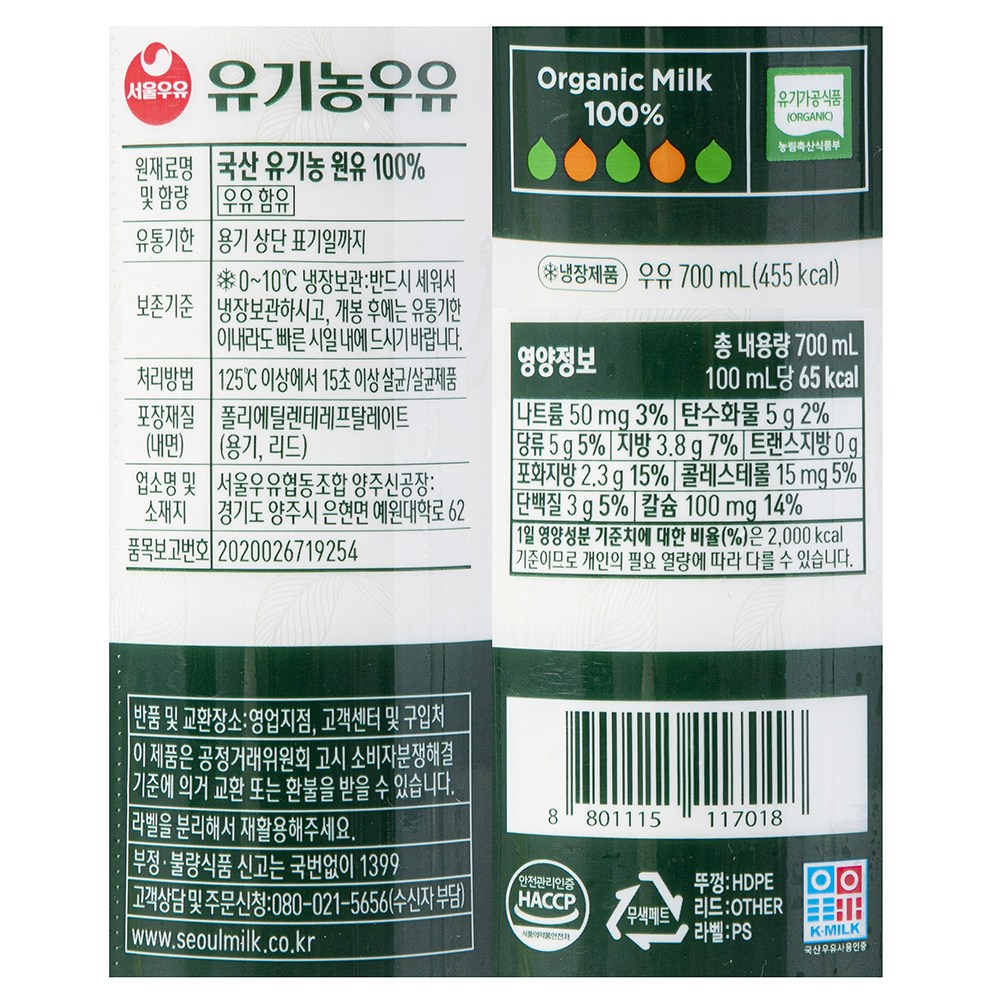 유기가공식품 우유