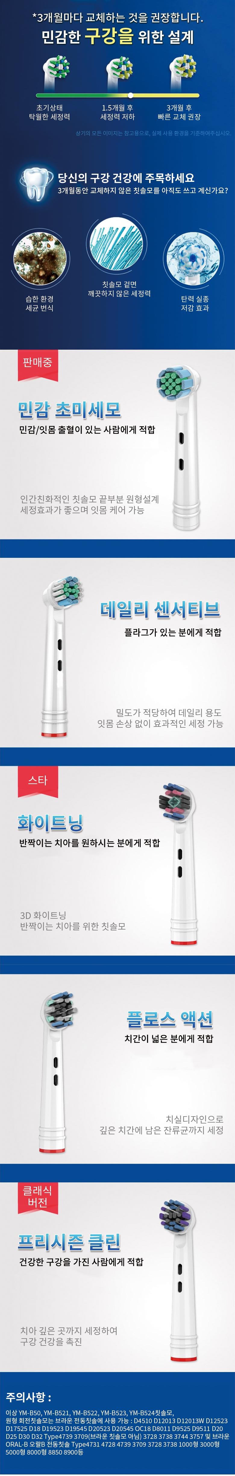 Yanmibest 오랄비 일렉트릭 칫솔 유니버설 로터리 서큘러 리필모 데일리 너싱 타입