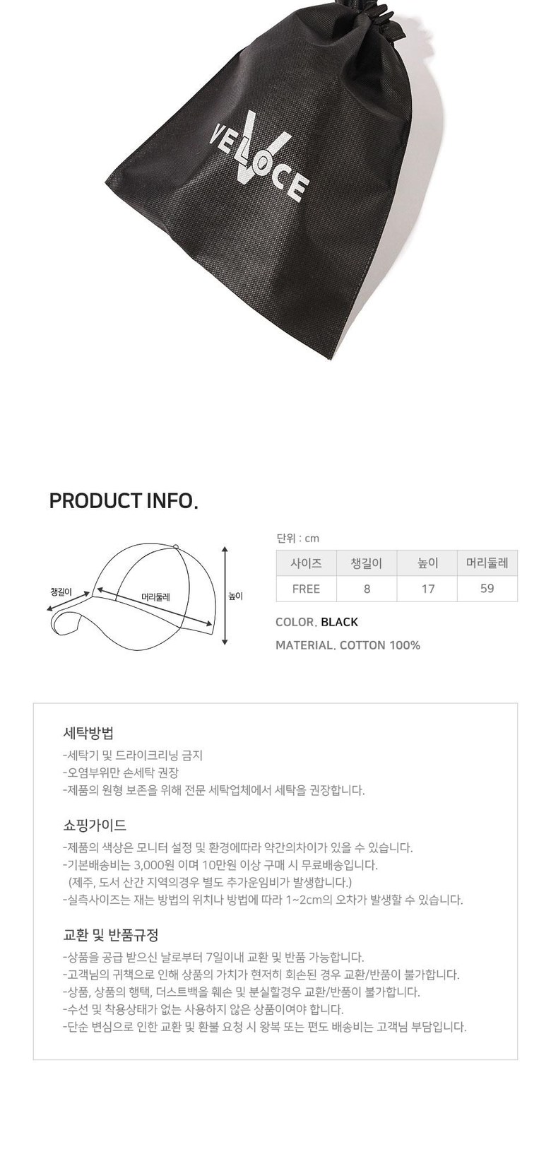 | 종류 | 모자 | 소재 | 면(100%) |