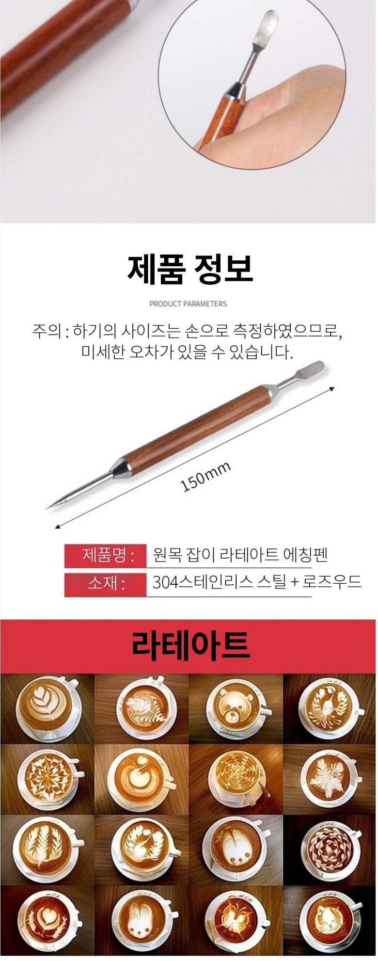 MOJAE 우든 핸들 라테 니들 커피아트용품, Wood, 2개