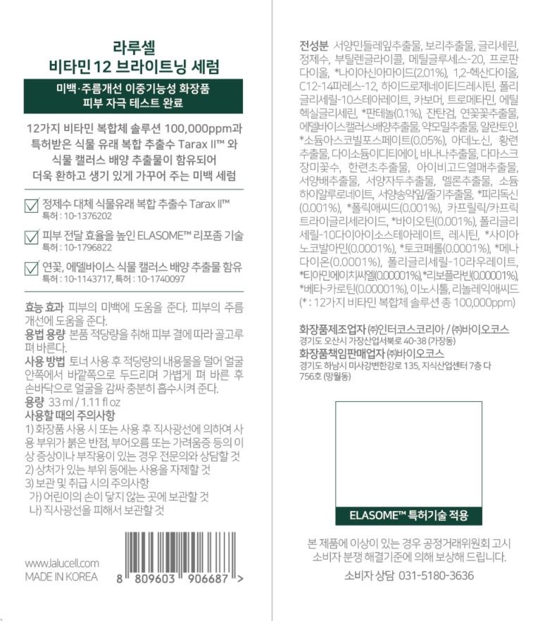 | 화장품제조업자, 화장품책임판매업자 및 맞춤형화장품판매업자 | (주)인터코스코리아 / (주)바이오코스 | 제조국 | 한국 |