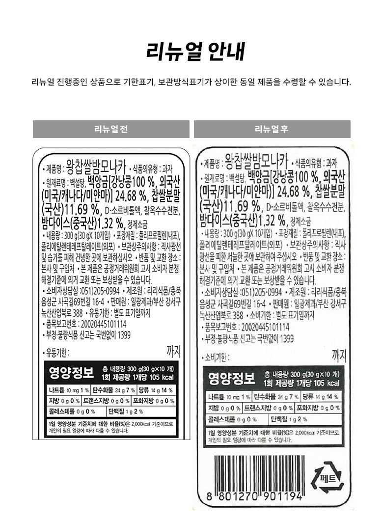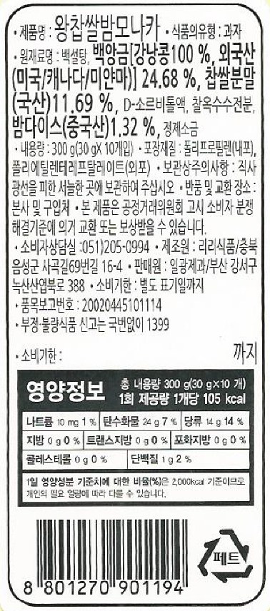 | 제품명 | 왕찹쌀밤모니카 | 식품의 유형 | 과자 |