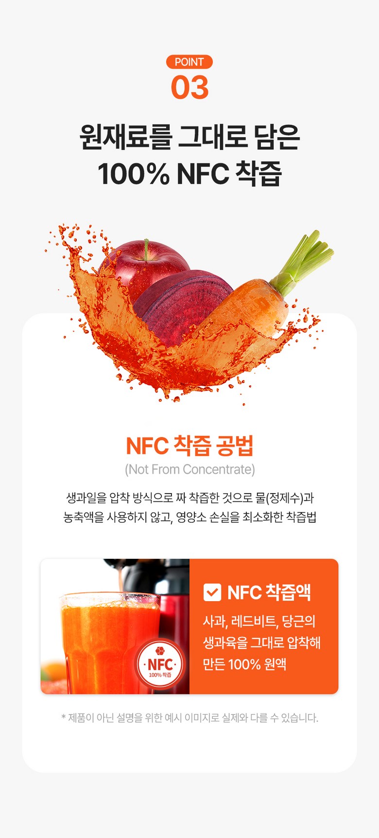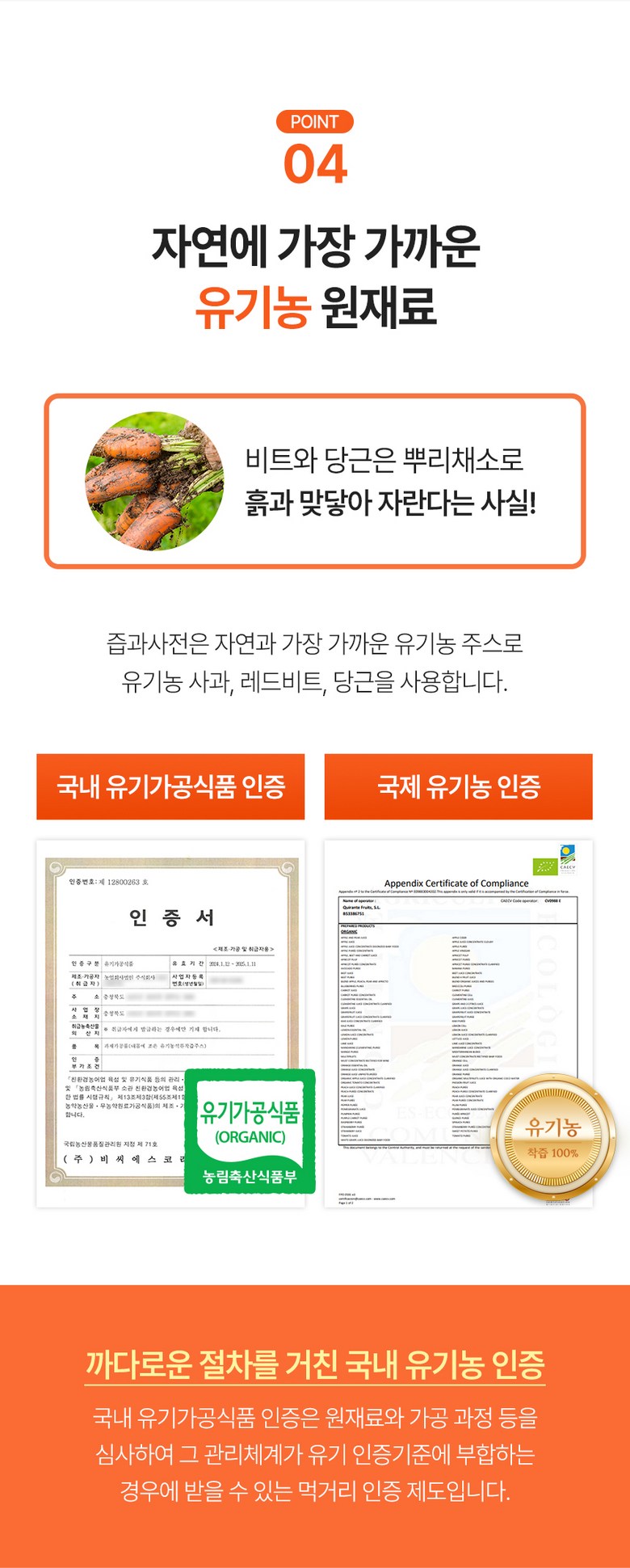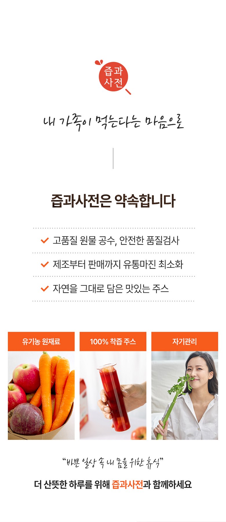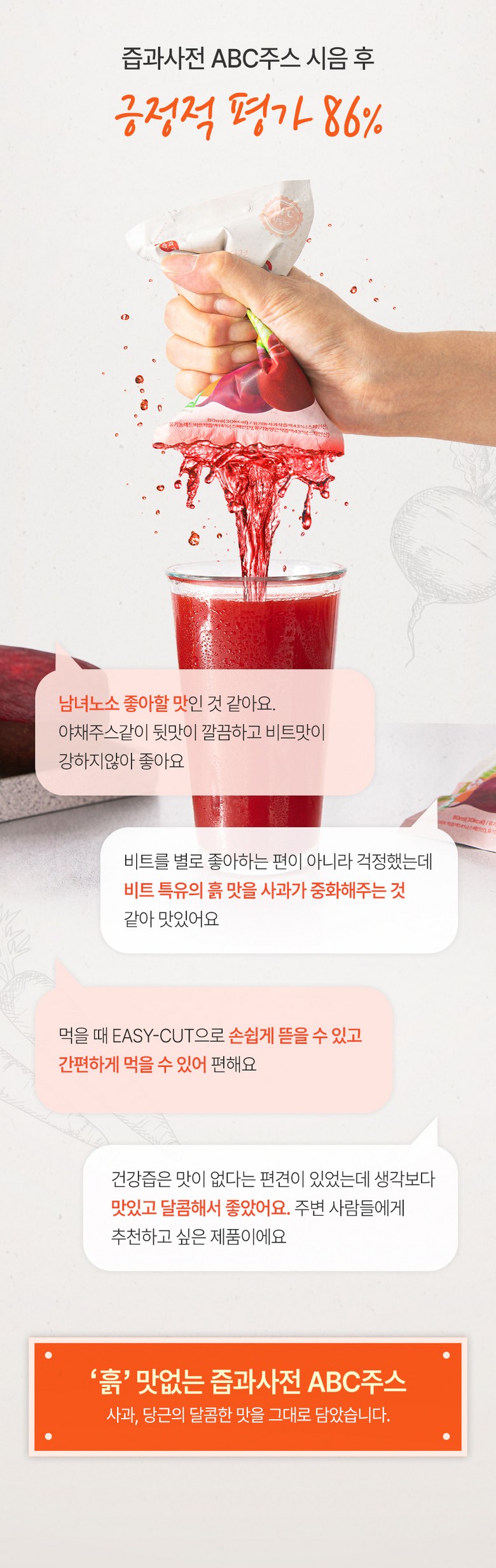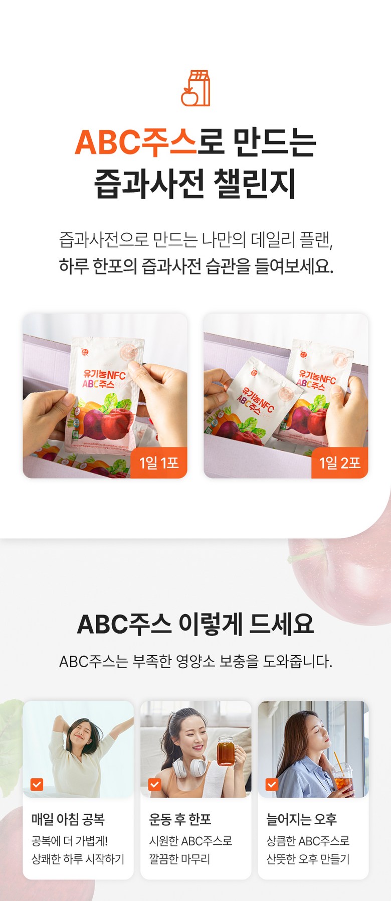 | 제품명 | 즙과사전 유기농 NFC ABC주스 착즙주스, 80ml, 30개 | 식품의 유형 | 상품 상세페이지 참조 |
