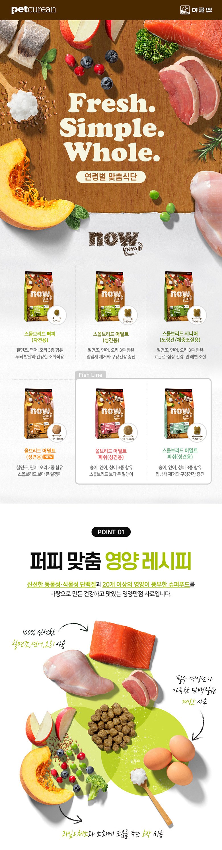 - 칠면조, 연어 그리고 오리 등을 사용하여 만든 애견사료