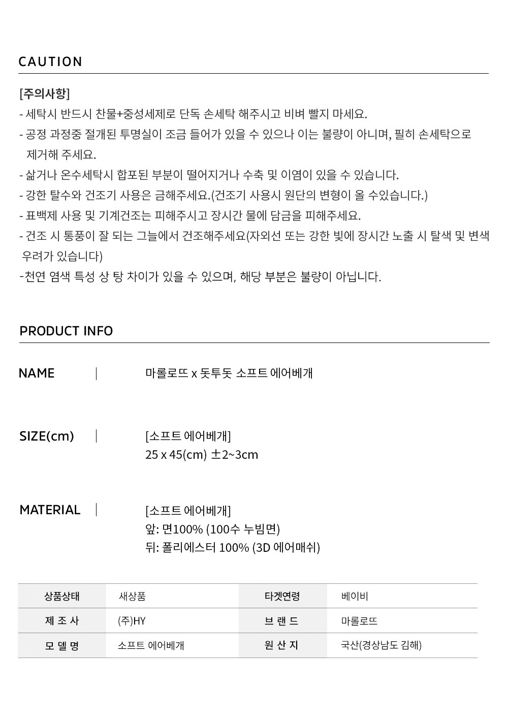 - 세탁방법: 손세탁권장
