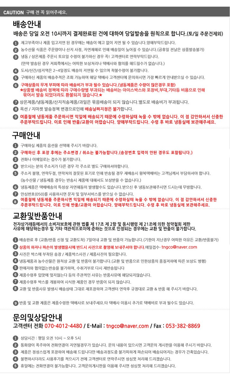 - ㆍ교환/반품에 관한 일반적인 사항은 판매자가 제시사항보다 관계법령이 우선합니다.
