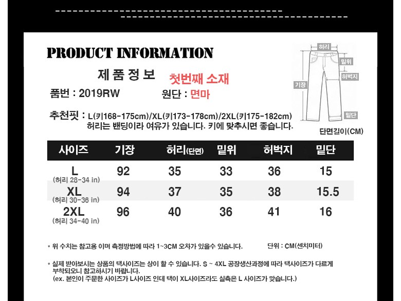 | 제품 소재 | 상품 상세페이지 참조 | 색상 | 상품 상세페이지 참조 |