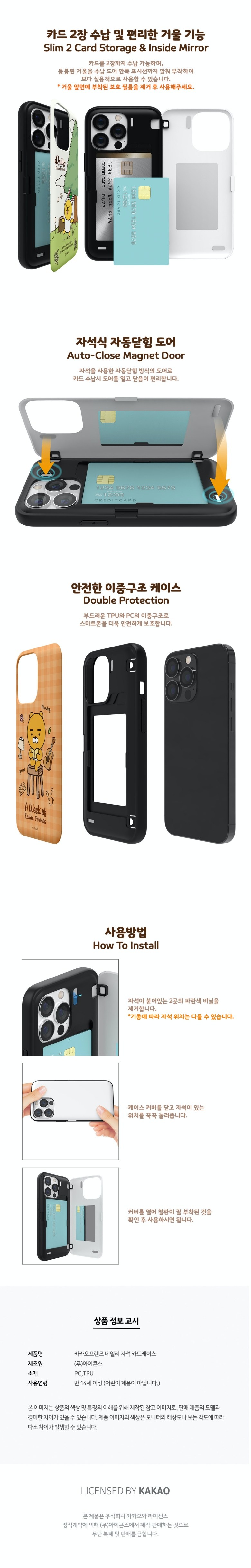 | 품명 및 모델명 | 카카오프렌즈 데일리 자석카드 케이스 와펜무지 아이폰11 | 인증/허가 사항 | 해당없음 |