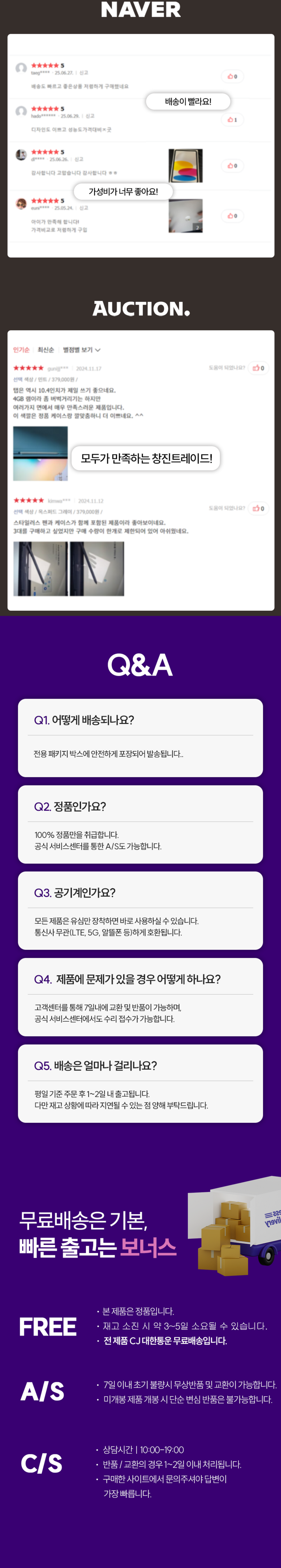 - ㆍ제조사의 사정 (신모델 출시 등) 및 부품 가격 변동 등에 의해 무료 교환/반품으로 요청하는 경우