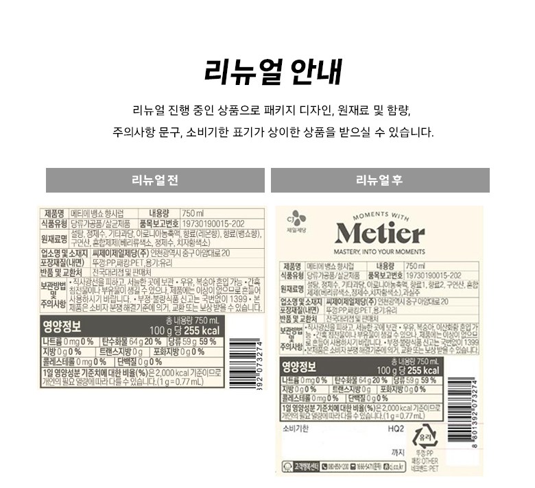 | 포장단위별 내용물의 용량(중량), 수량 | 750ml x 3개 | 원재료명 및 함량 | 컨텐츠 참조 |