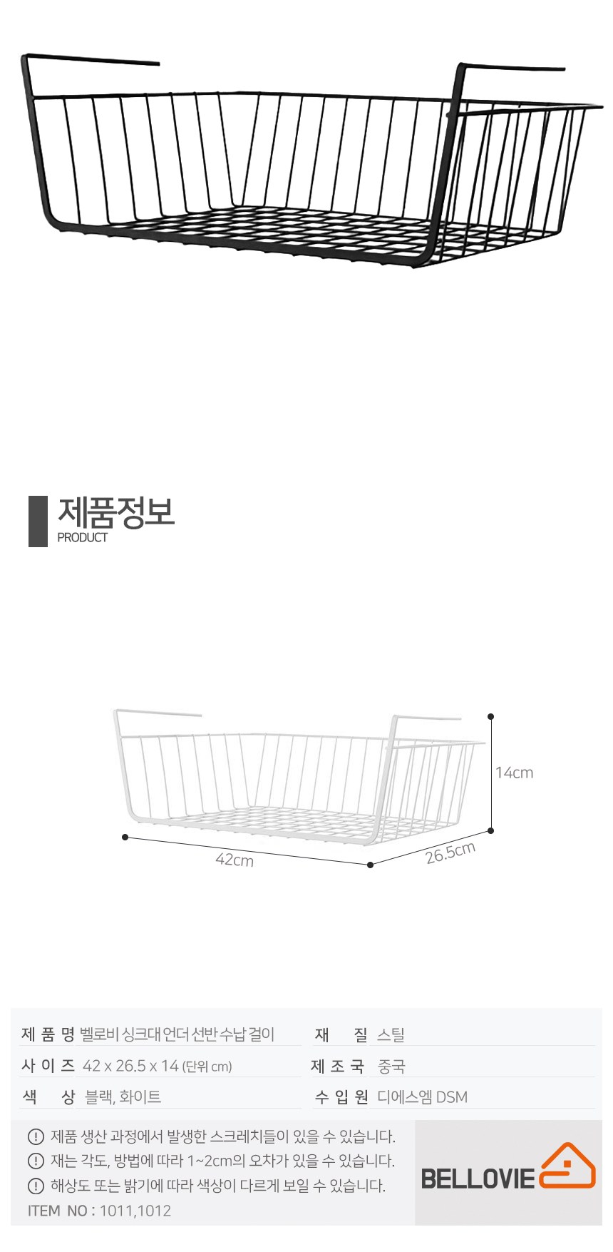 | 품명 및 모델명 | 벨로비 싱크대 언더선반 수납 걸이 | 재질 | 스틸 |