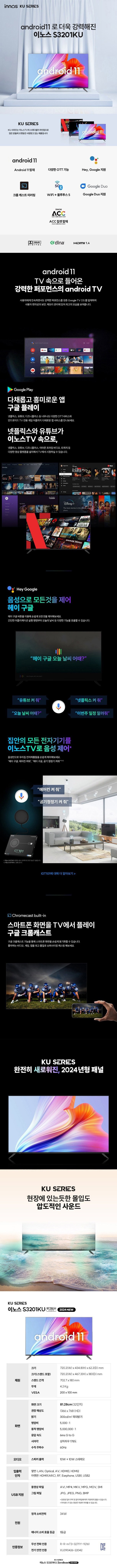| 품명 및 모델명 | 이노스 HD LED 제로베젤 스마트 TV / NEW S3201KU | KC 인증정보 | XU090426-22042F, R-R-mT3-32711Y-92161 |