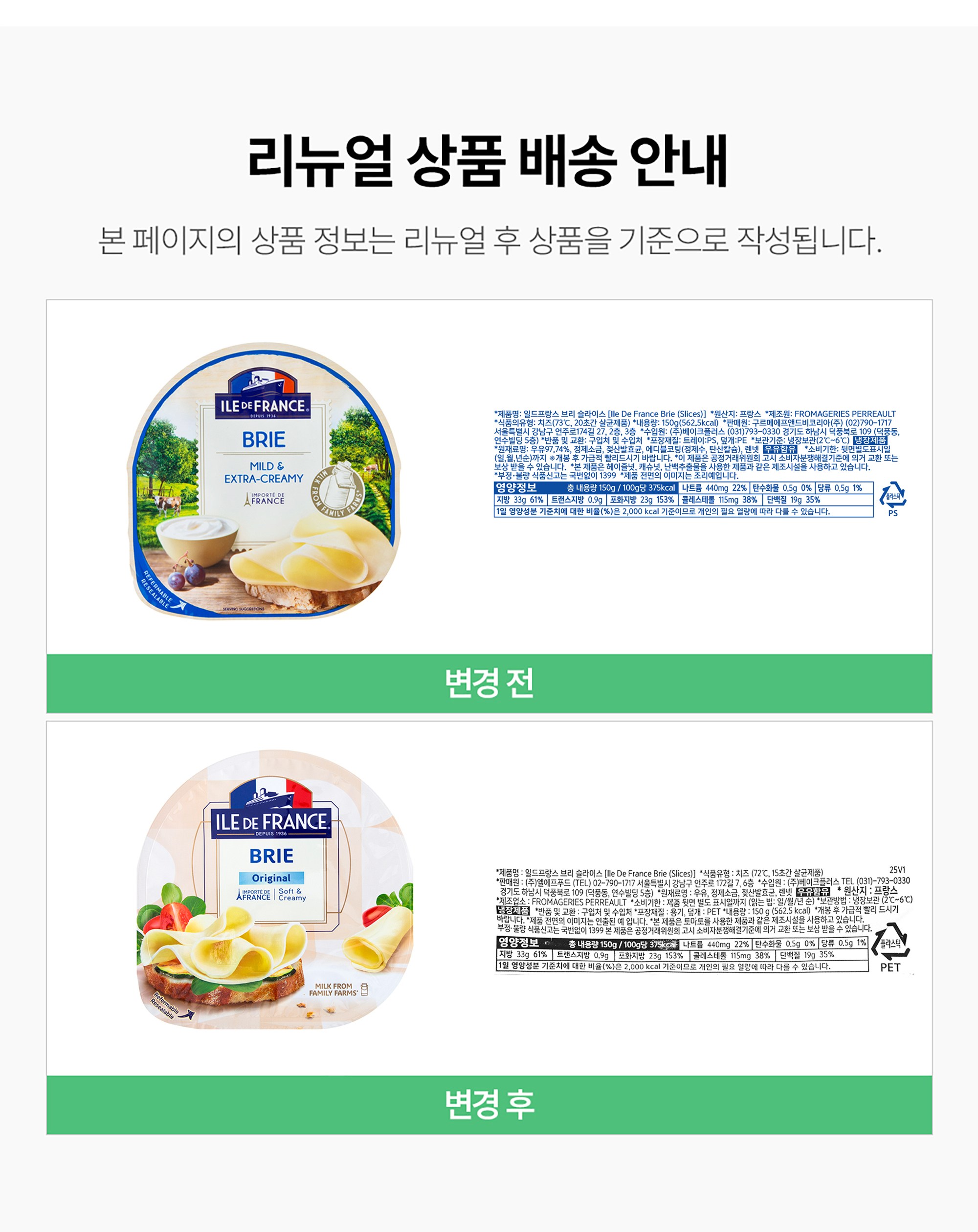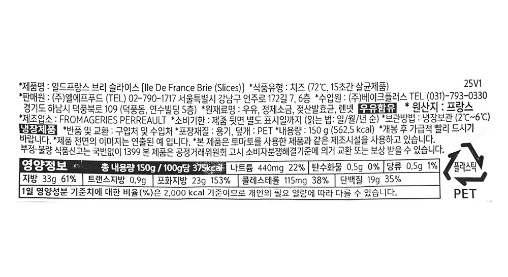 | 제품명 | 일드 프랑스 브리 슬라이스 | 식품의 유형 | 컨텐츠참조 |