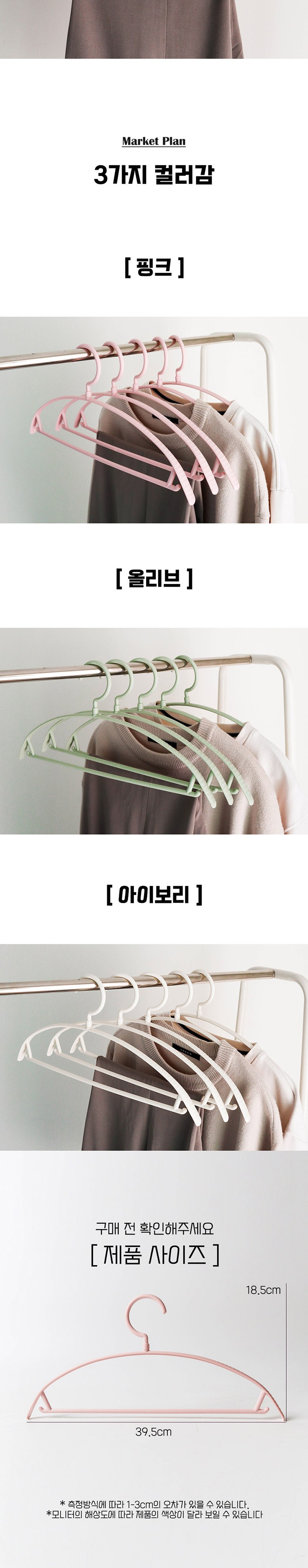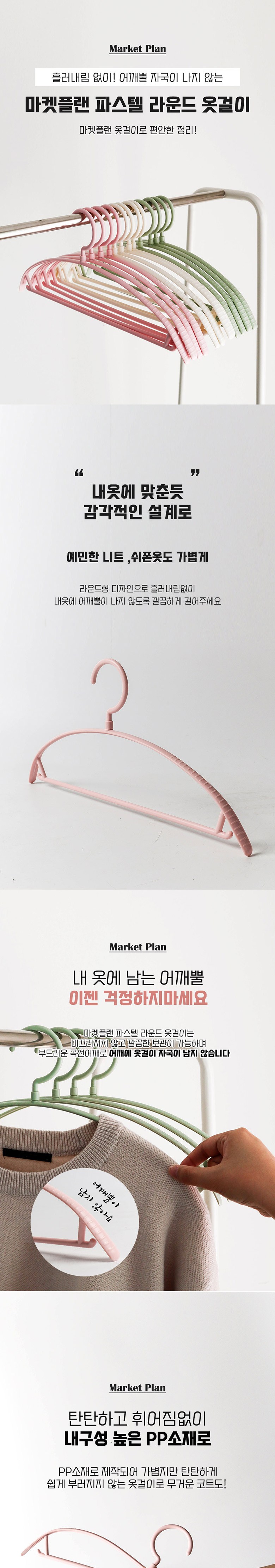 마켓플랜 파스텔 라운드 옷걸이, 아이보리, 20개