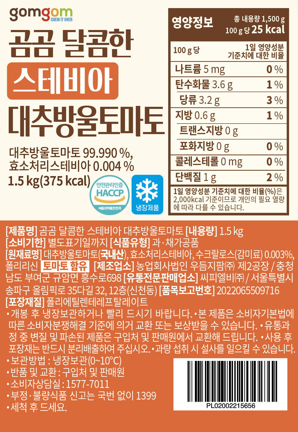 | 제품명 | 곰곰 달콤한 스테비아 대추방울토마토 | 식품의 유형 | 컨텐츠 참조 |