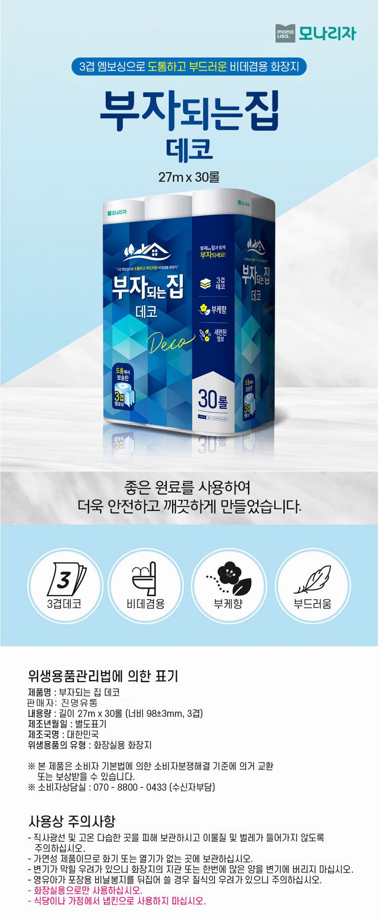 | 품명 및 모델명 | 모나리자 부자되는집 데코 3겹3 0롤 | 인증/허가 사항 | 상품 상세페이지 참조 |