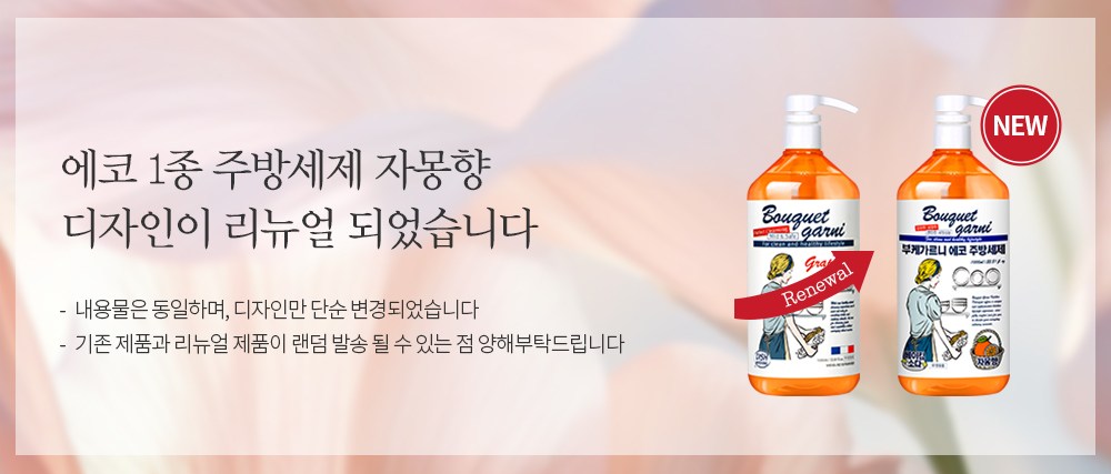 | 품명 및 모델명 | 부케가르니 에코 주방세제 자몽향 | 인증/허가 사항 | 위생용품 |