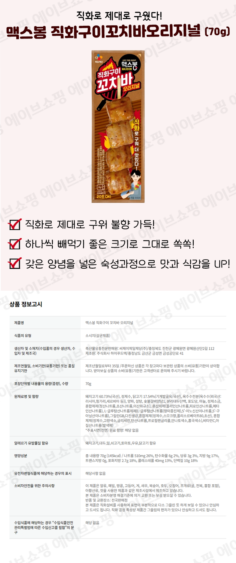 | 제품명 | 상품 상세페이지 참조 | 식품의 유형 | 상품 상세페이지 참조 |