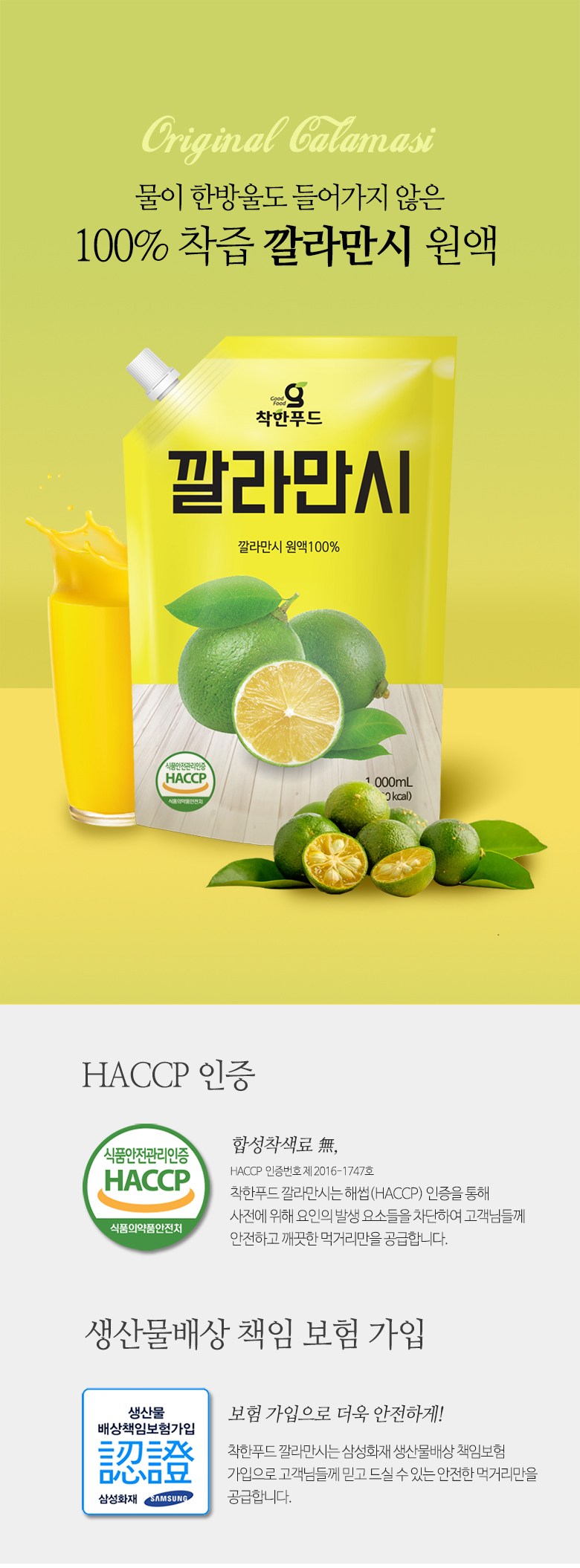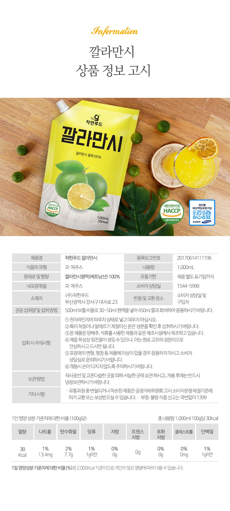 | 제품명 | 착한푸드 깔라만시 | 식품의 유형 | 과·채주스 |