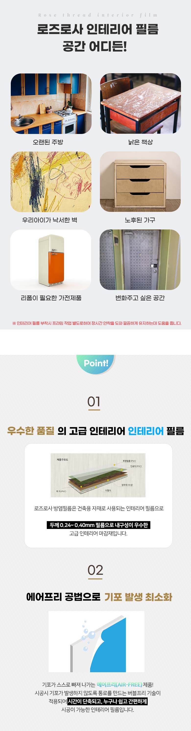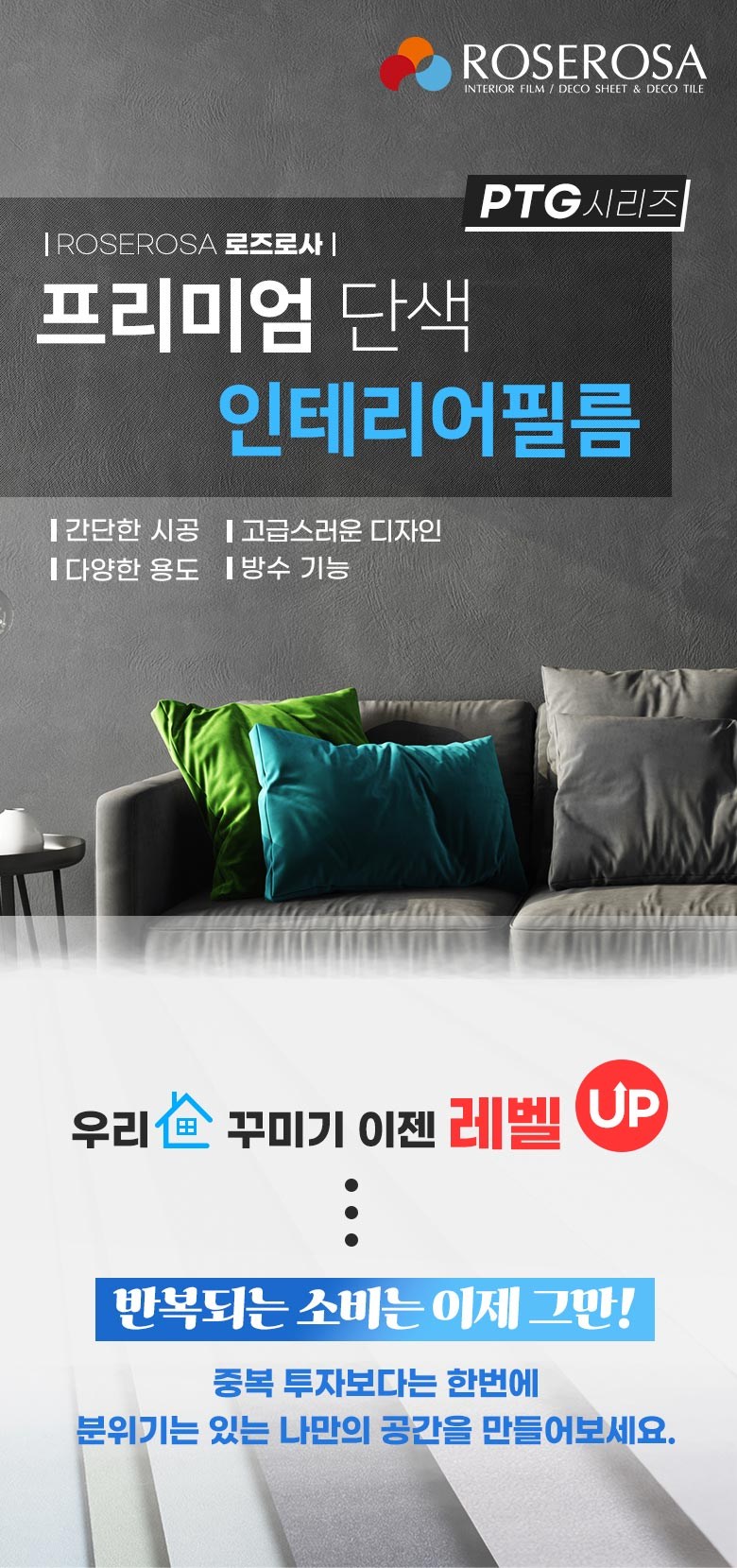로즈로사 에어프리 공법 인테리어 프리미엄 단색 컬러 필름 시트지