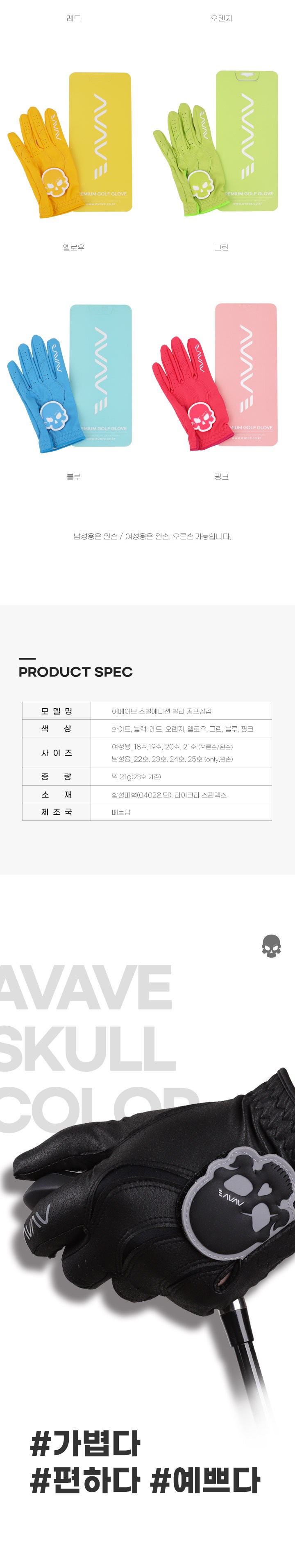 | 품명 및 모델명 | 어베이브 스컬에디션 남여공용 칼라 골프장갑 / AVAVE_ColorGlove | KC 인증정보 | 해당없음 |