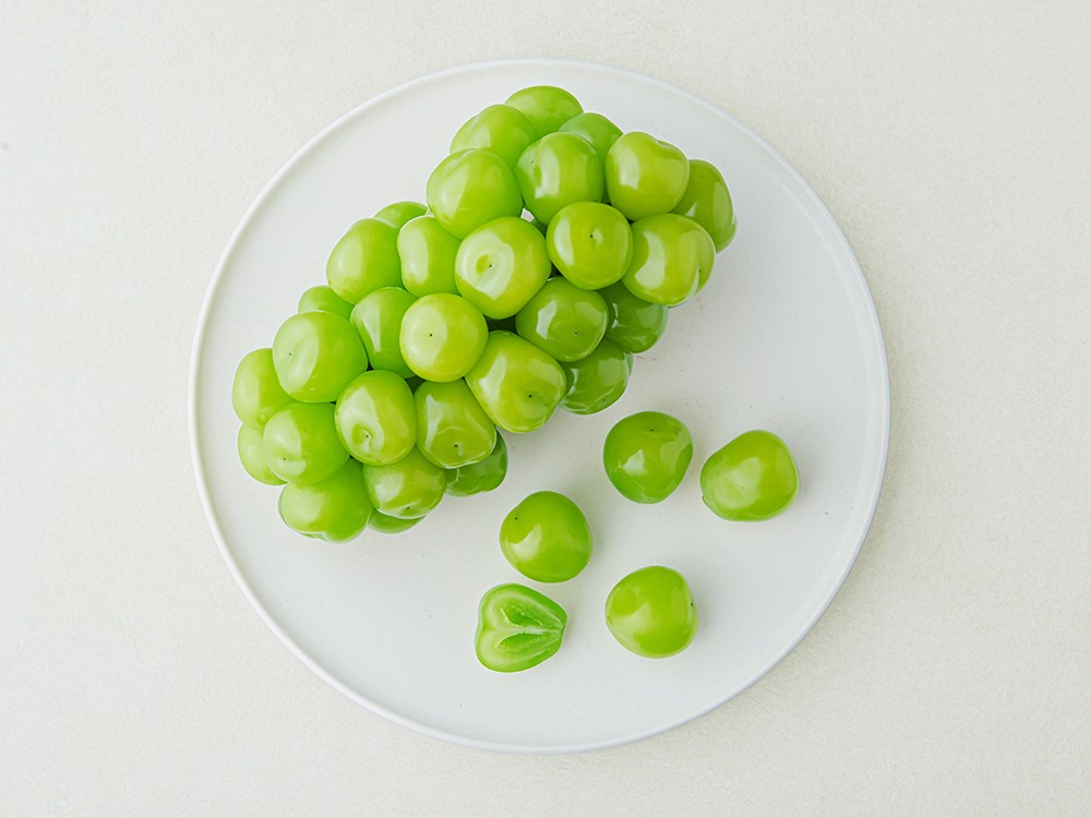 당도를 선별해 알알이 달콤함을 만끽할 수 있는 샤인머스캣입니다. 과육을 손상시키지 않는 비파괴 방식으로 당도를 측정해 탐스러운 과육을 그대로 만날 수 있어요. 크고 탱글탱글한 과육을 깨물면 과즙이 톡 터져나오는데요. 특유의 향긋함과 아삭아삭한 식감도 일품이에요. 생과 그대로 먹어도 좋고, 요거트나 베이커리 토핑으로 활용해도 좋아요.