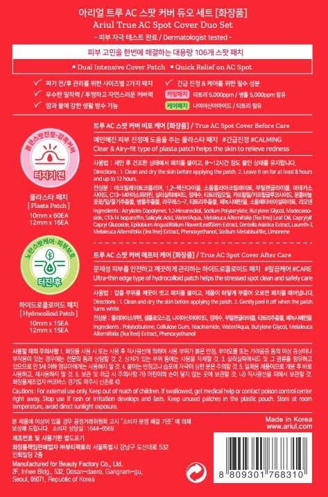 | 용량(중량) | 106패치 | 제품 주요 사양 | 모든 피부용 |