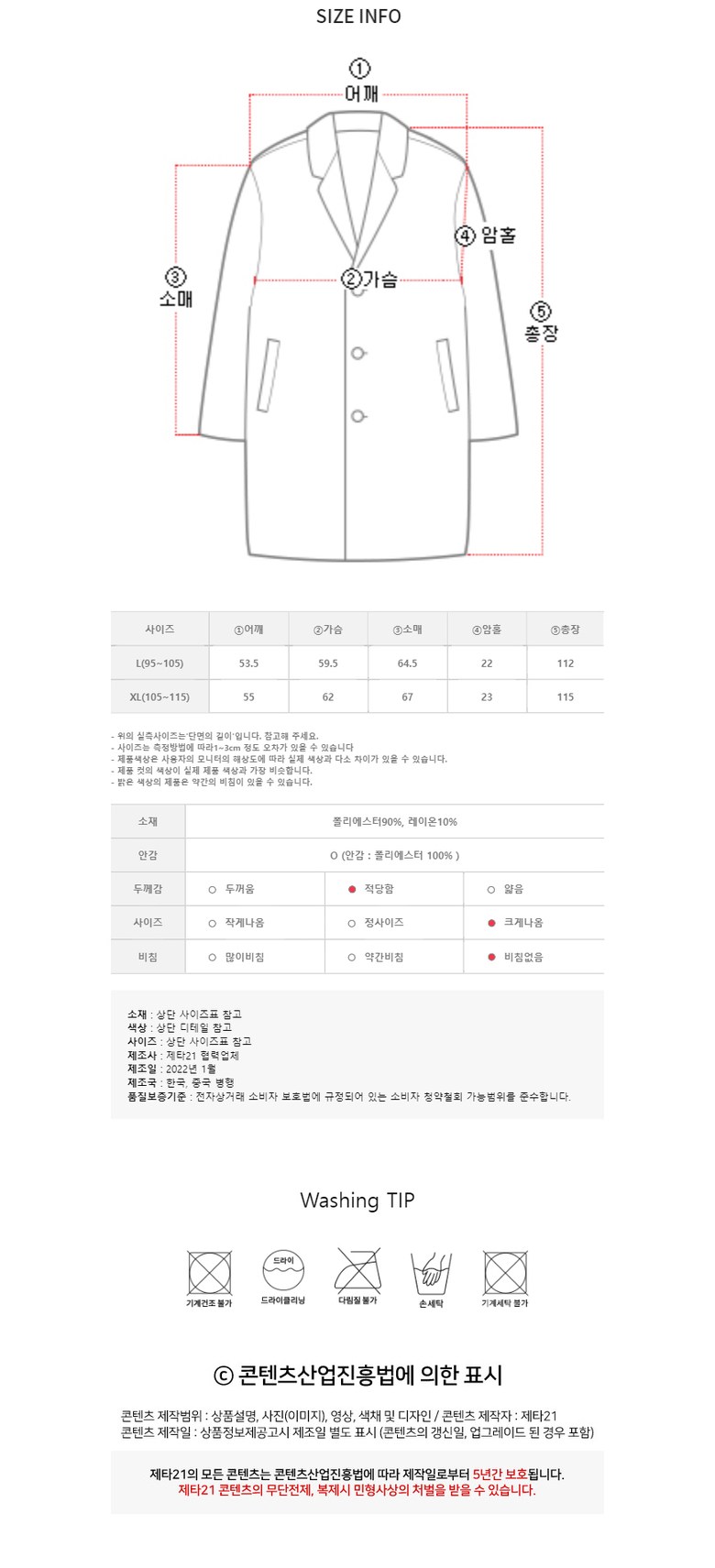 | 치수 | 컨텐츠 참조 | 제조자(수입자) | 컨텐츠 참조(업체 정보 미제공으로 정확한 제조,수입자 확인 불가) |