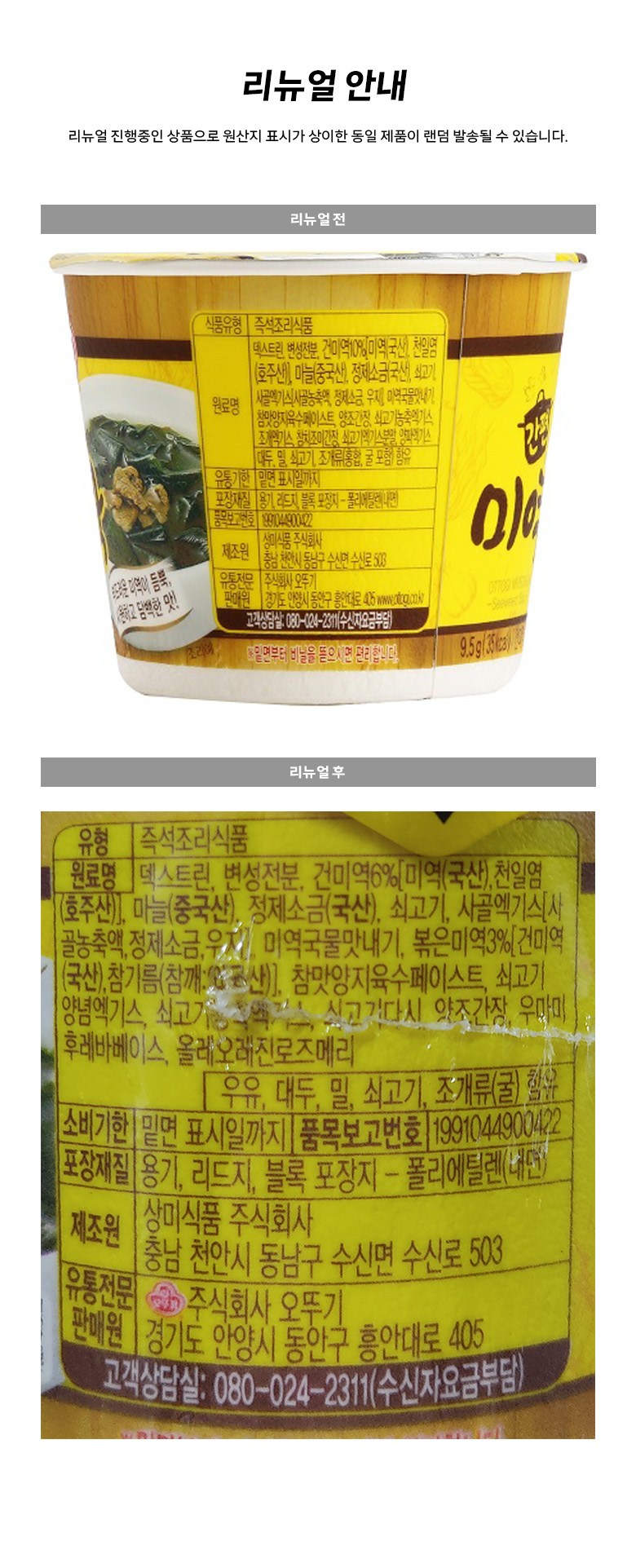 | 제품명 | 간편 미역국 | 식품의 유형 | 즉석조리식품 |