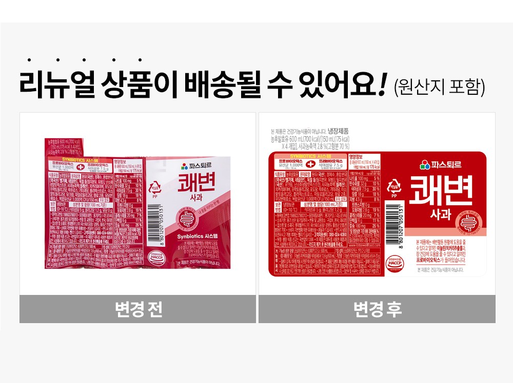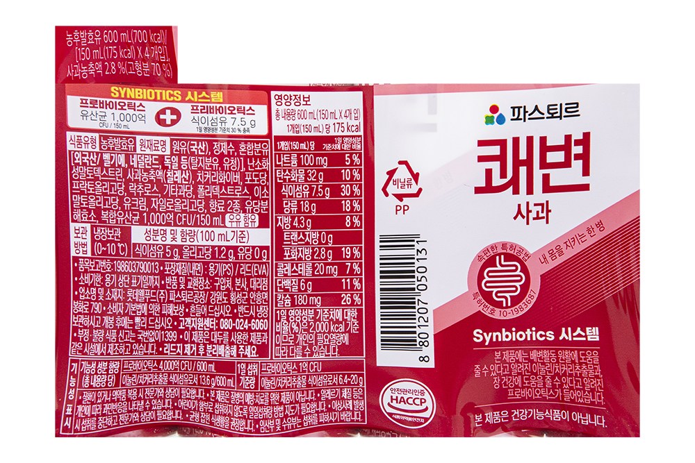 | 제품명 | 파스퇴르 쾌변 사과 | 식품의 유형 | 컨텐츠참조 |