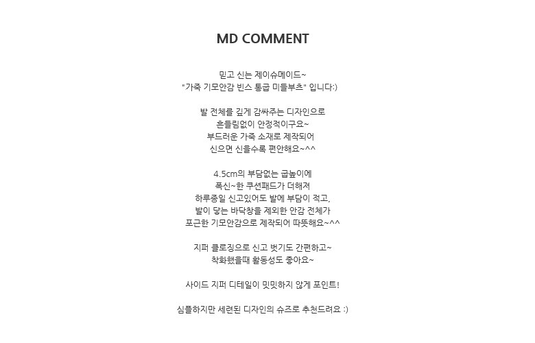 | 제조국 | 중국OEM | 취급시 주의사항 | 직사광선을 피하여 서늘하고 통풍이 잘되는곳에 보관 / 수분 노출에 주의 / 천연가죽 제품은 한쌍의 슈즈라도 양쪽의 무늬가 미세하게 차이가 있을수 있음 |