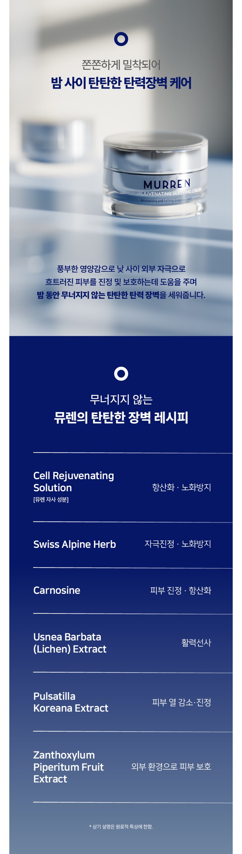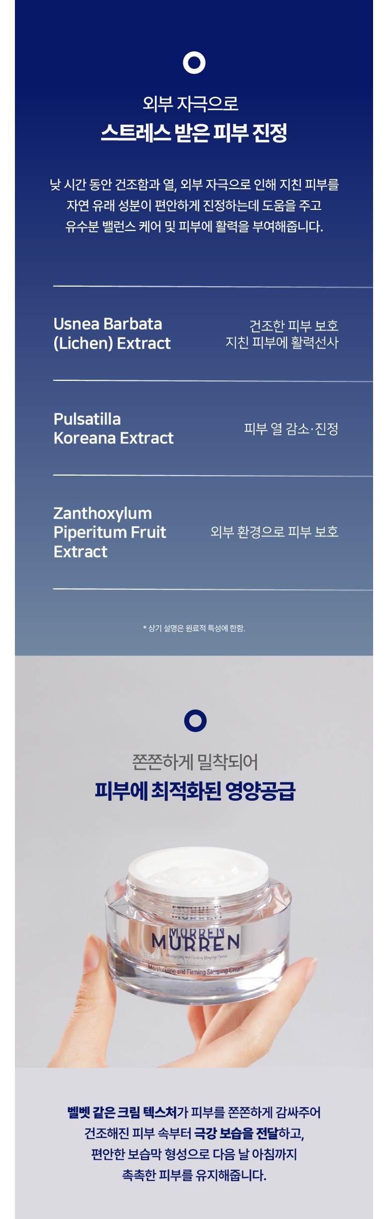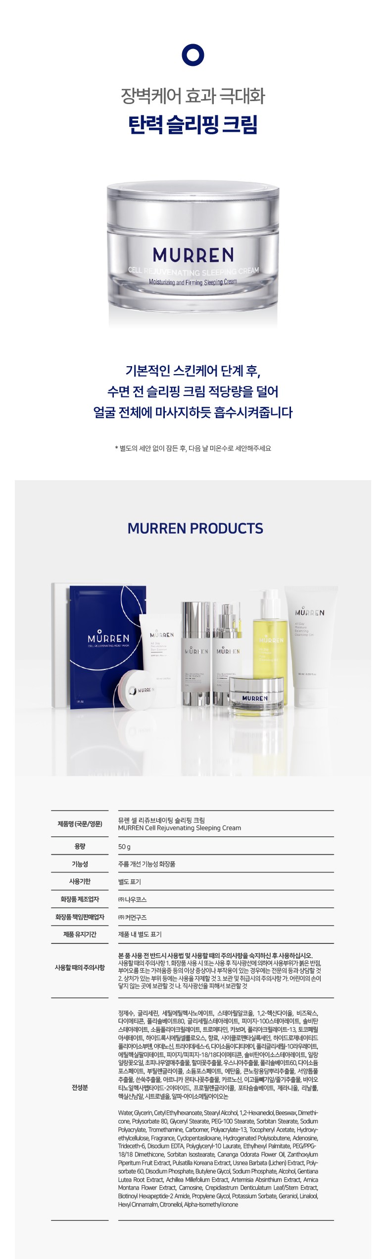 | 사용기한 또는 개봉 후 사용기간 | 개봉 전 36개월/개봉 후 12개월 이내 | 사용방법 | 저녁 세안 후, 토너로 피부 결을 정돈하고 본 품 적당량을 취해 얼굴에 도포하여 얼굴 전체에 마사지하듯 흡수시켜줍니다. 별도의 세안 없이 잠든 후 다음 날 아침에 미온수로 세안해 주시면 됩니다. |