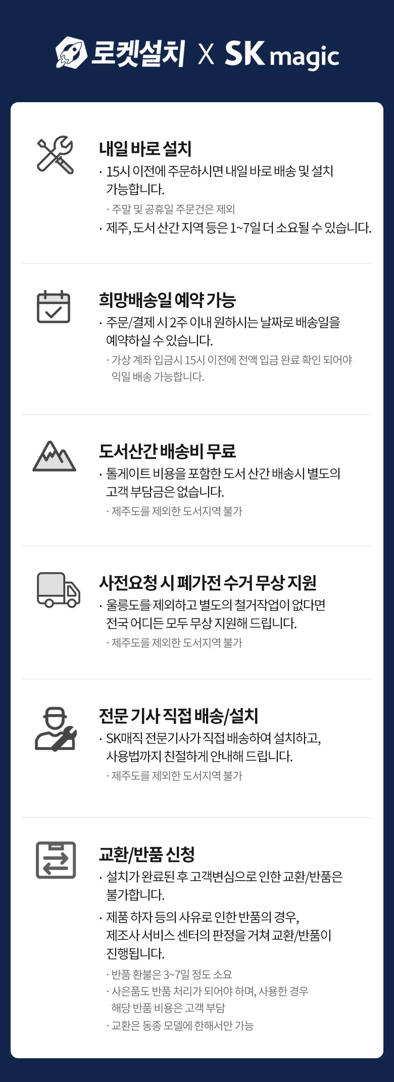| 배송방법 | 설치배송 | 배송사 | SK직배송 |