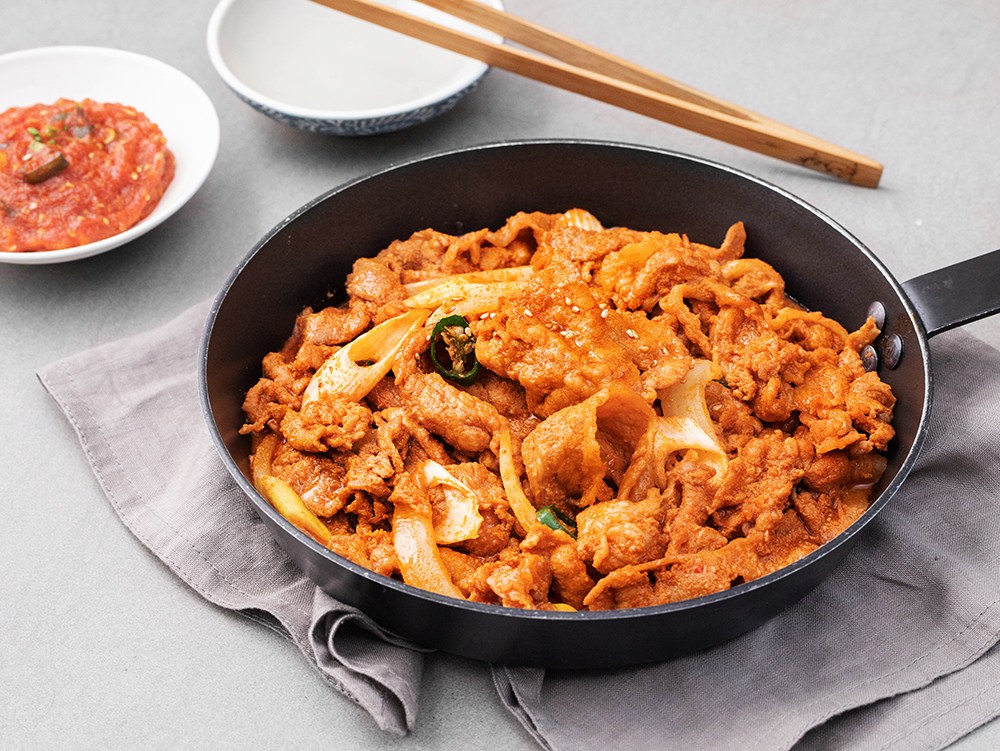돼지 앞다리살에 칼칼한 양념을 촉촉하게 버무린 불고기예요. 야들야들한 돼지고기가 씹을수록 구수한 감칠맛을 선사한답니다. 번거롭게 양념할 필요 없이 간편하게 조리해 드셔 보세요. 매콤 달콤하고 정갈한 풍미가 입맛을 사로잡을 거예요.