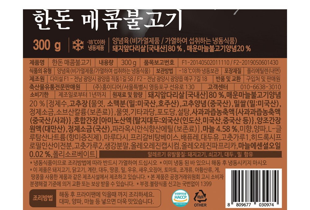 | 제품명 | 한돈 매콤불고기 | 식품의 유형 | 컨텐츠참조 |