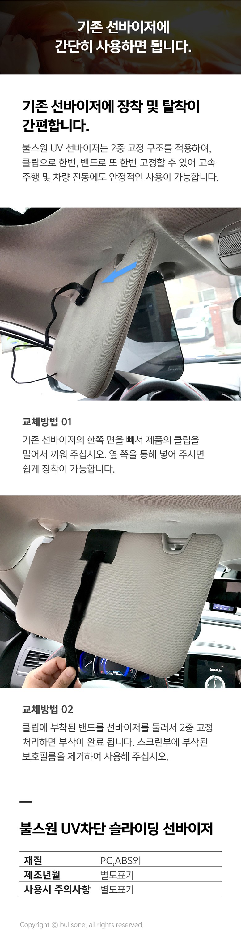 | 품명 및 모델명 | 불스원 UV차단 슬라이딩 차량용 선바이저 | 동일모델 출시년월 | 2020. 04 |