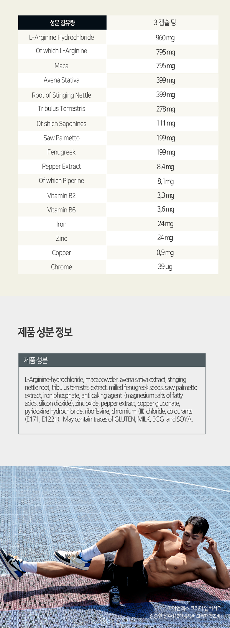 | 생산자 및 소재지 | Ironmaxx Nutrition GmbH, Germany | 제조연월일, 소비기한 또는 품질유지기한 | 상품 상세페이지 참조 |