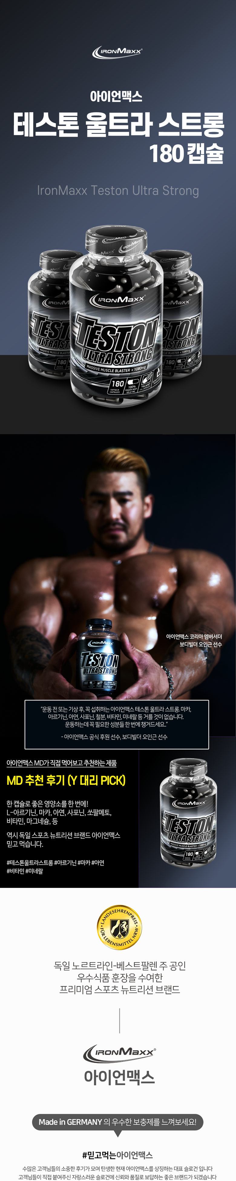 | 제품명 | Ironmaxx Teston Ultra Strong - 180 Tricaps | 식품의 유형 | 상품 상세페이지 참조 |