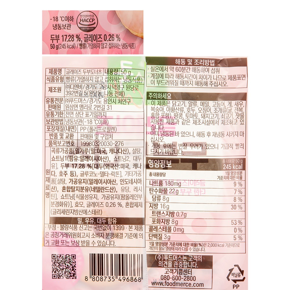 | 제품명 | 풀스쿡 글레이즈 두부 도너츠 | 식품의 유형 | 컨텐츠참조 |