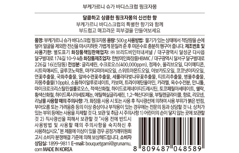 | 화장품제조업자, 화장품책임판매업자 및 맞춤형화장품판매업자 | 컨텐츠 참조 | 제조국 | 대한민국 |