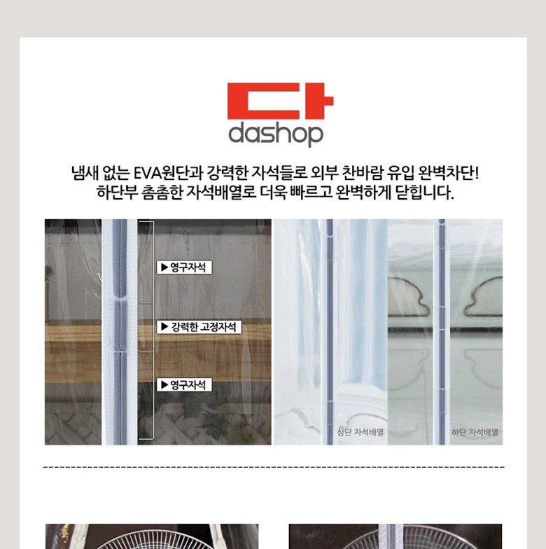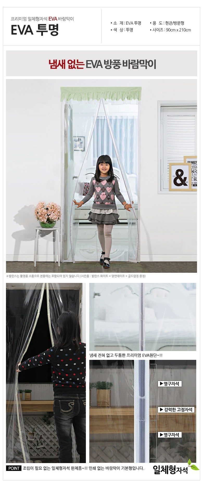 | 품명 및 모델명 | 방풍비닐_EVA일체형자석 투명 90x210cm | 인증/허가 사항 | 해당사항없음 |