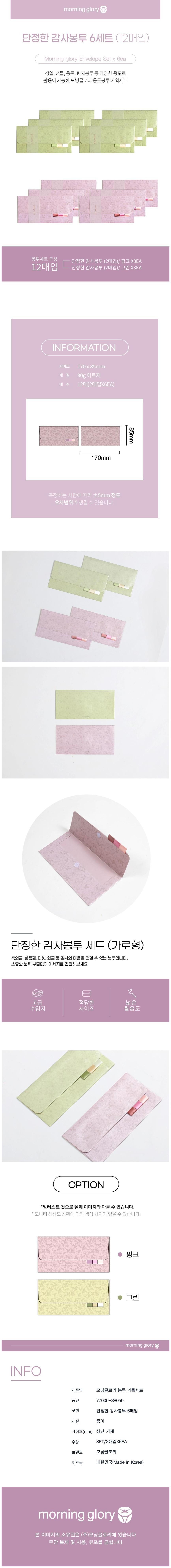 | 품명 및 모델명 | 모닝글로리 단정한 감사봉투 6 x 2p 세트 | 인증/허가 사항 | 해당없음 |