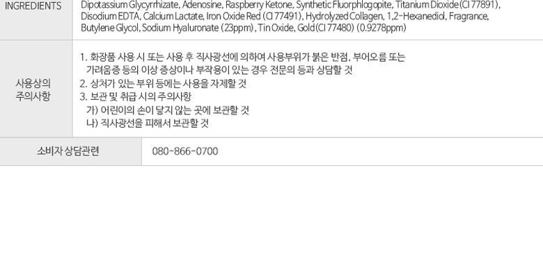 | 화장품제조업자, 화장품책임판매업자 및 맞춤형화장품판매업자 | 상품 상세페이지 참조 | 제조국 | 대한민국 |