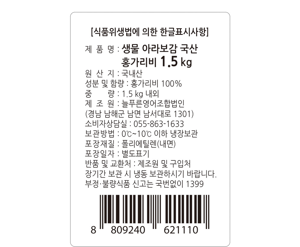 - 손질 과정에서 껍데기 혹은 내장살이 일부 포함될 수 있습니다. 드시기 전 깨끗하게 헹궈주시고, 세척 시 껍데기 조각에 다치지 않도록 주의해주세요.