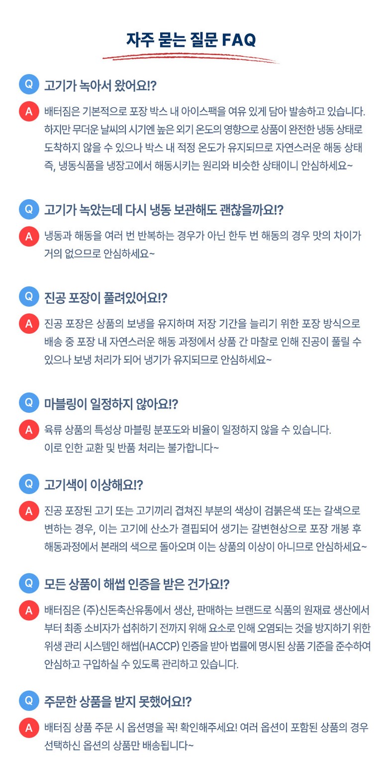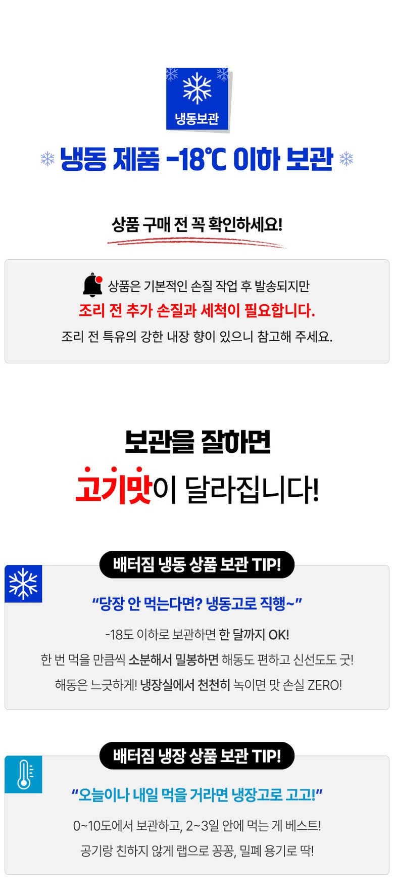 | 배송방법 | 신선/냉장/냉동 | 배송비 | 무료배송 · 도서산간 추가 배송비 - 제주 지역: 5,000원 - 도서산간 지역: 3,000원 |