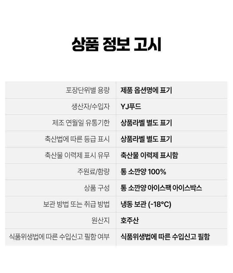 | 생산자(수입자) | (주)신돈축산유통 | 원산지 | 호주산 |