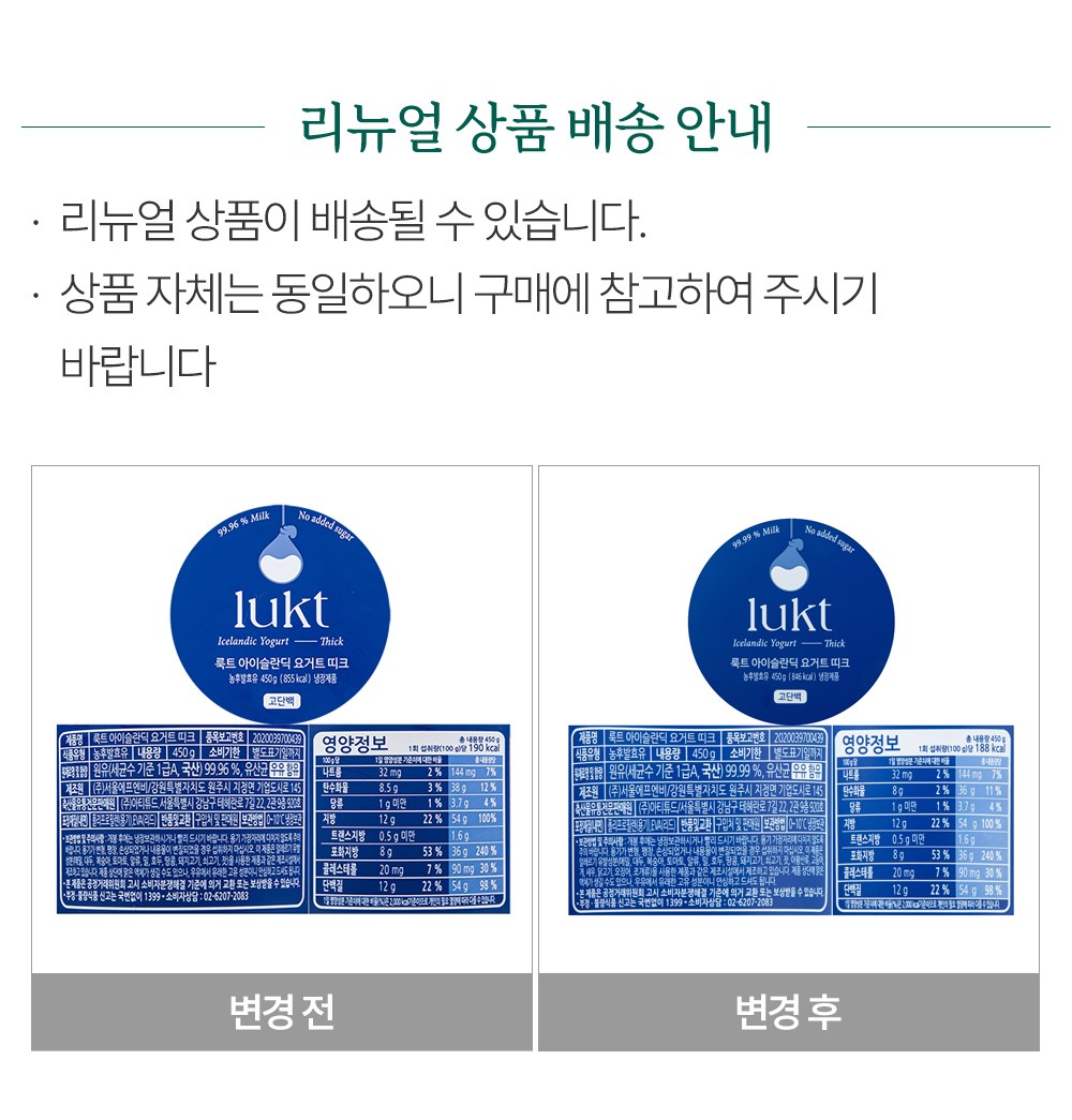 · 냉장 유제품은 소비기한이 짧으니, 상단 필수표기정보를 통해 소비기한(또는 유통기한)을 확인 후 구매하세요.