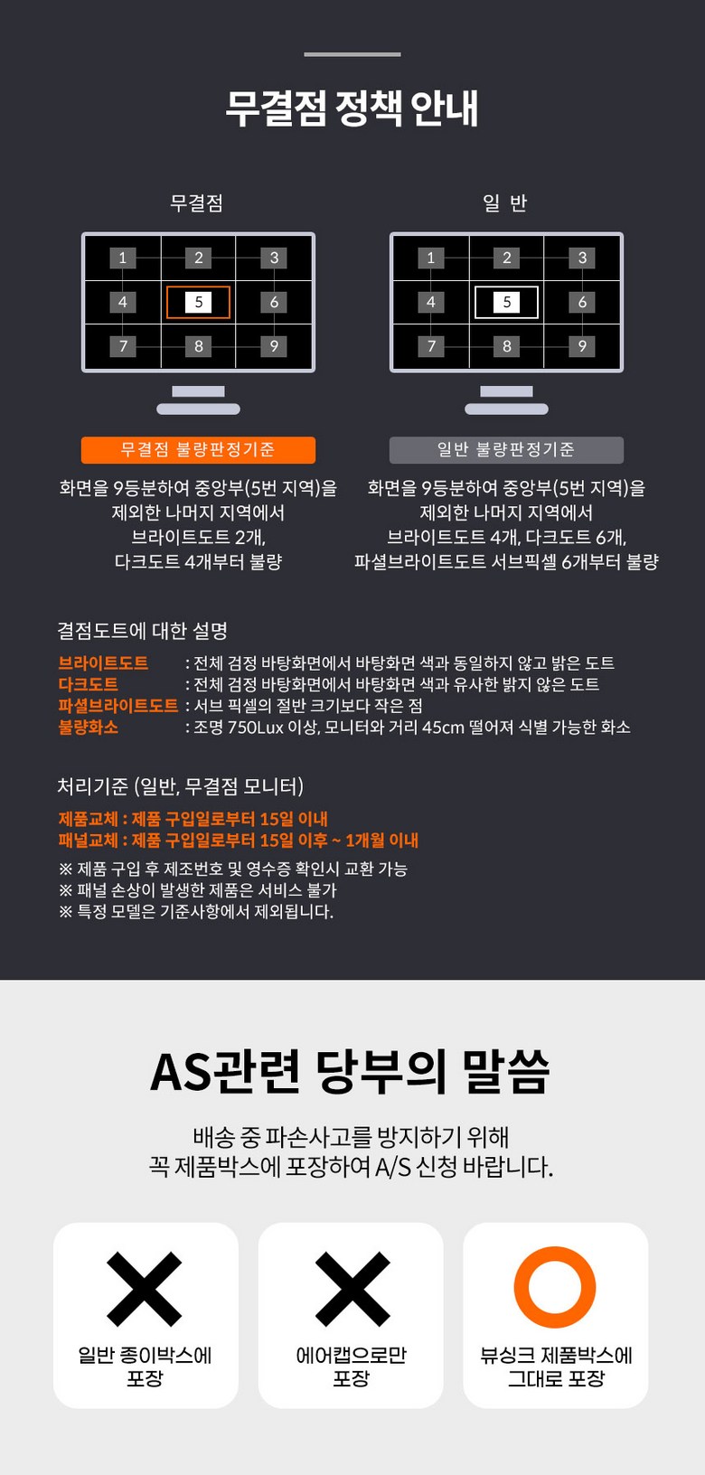 - ㆍ제조사의 사정 (신모델 출시 등) 및 부품 가격 변동 등에 의해 무료 교환/반품으로 요청하는 경우